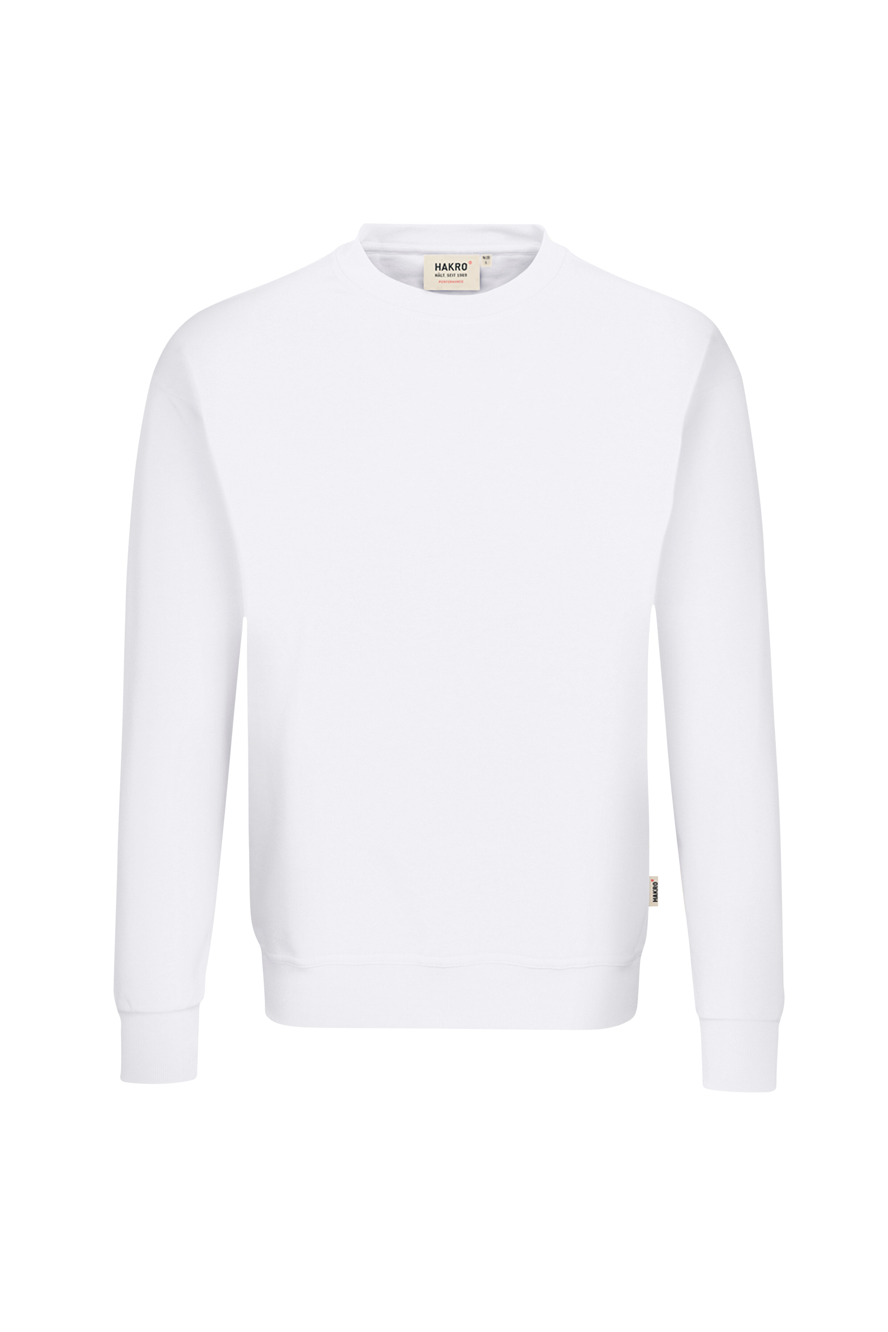 Besonders strapazierfähiges Sweatshirt mit rundem Halsausschnitt, formstabilen Bündchen mit LYCRA®-Anteil, nicht angerauter Innenseite (French-Terry) und Nackenband. Leasingkoller zur einfachen Kennzeichnung in der gewerblichen Wäscherei und Aufhängebänder im Saum. Hergestellt aus weicher, besonders pflegeleichter und funktioneller Maschenware aus dem HAKRO Performance-Materialmix Mikralinar®. Gewebtes HAKRO Necklabel aus hochwertigem Kettsatin mit weichen, ultraschallgeschnittenen Bandkanten für höchsten Tragekomfort und gewebtes HAKRO Flaglabel an der linken Seitennaht.