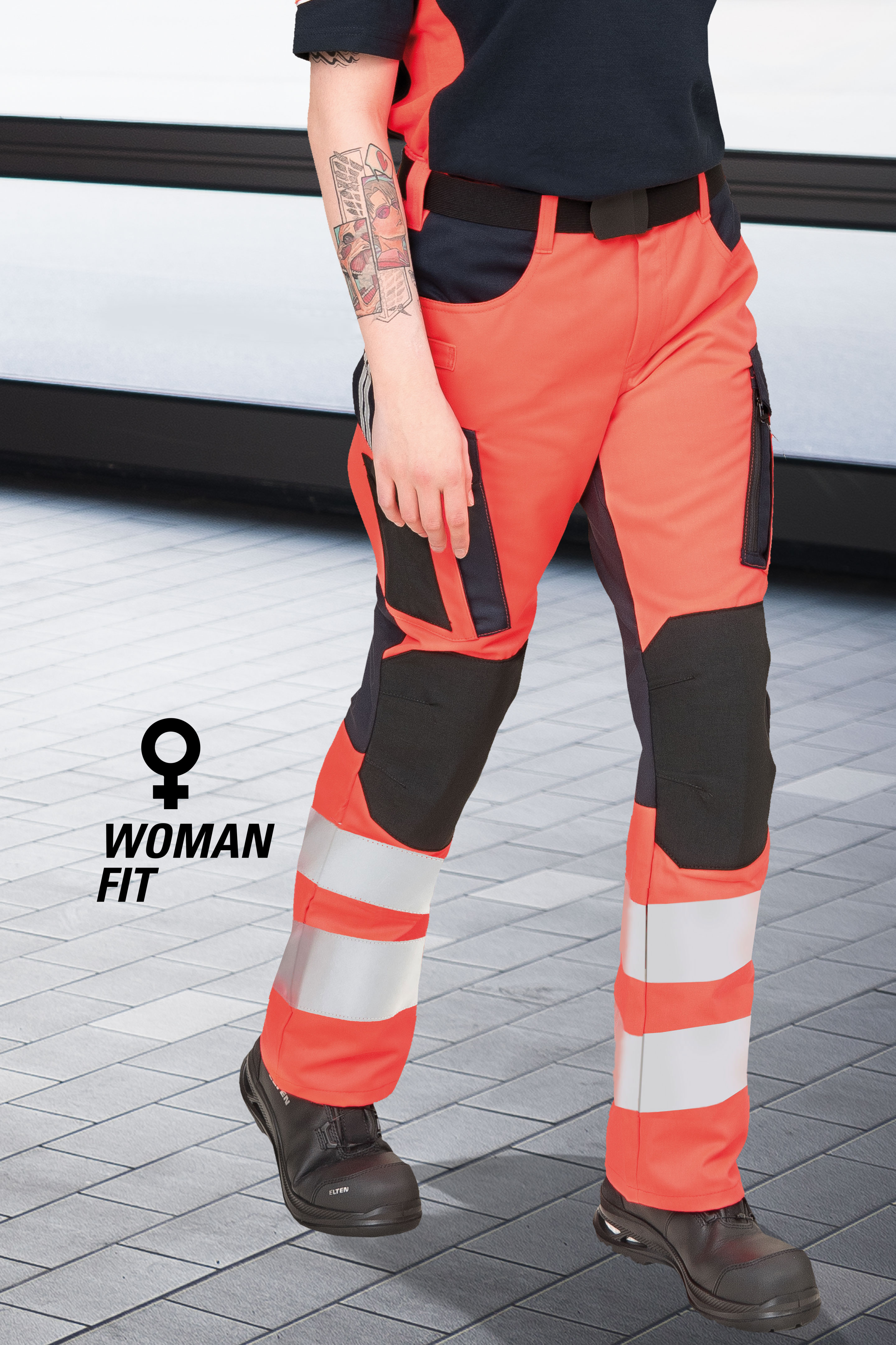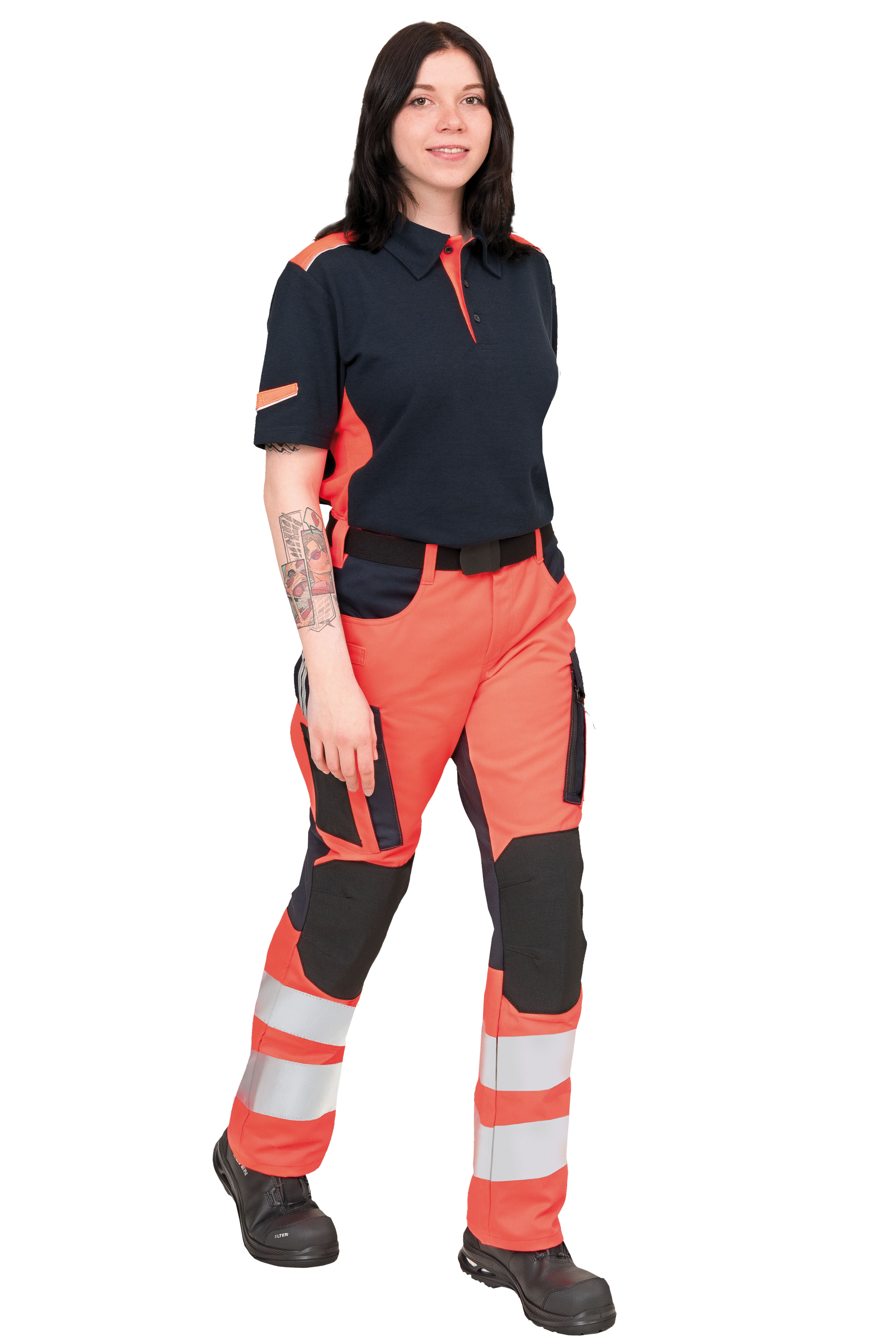 Voll elastische Rettungsdiensthose für Damen | Warnklasse 1 |speziell entwickelt für den optimalen Einsatz im professionellen Rettungsdienst | Sanitäter und Notärzte