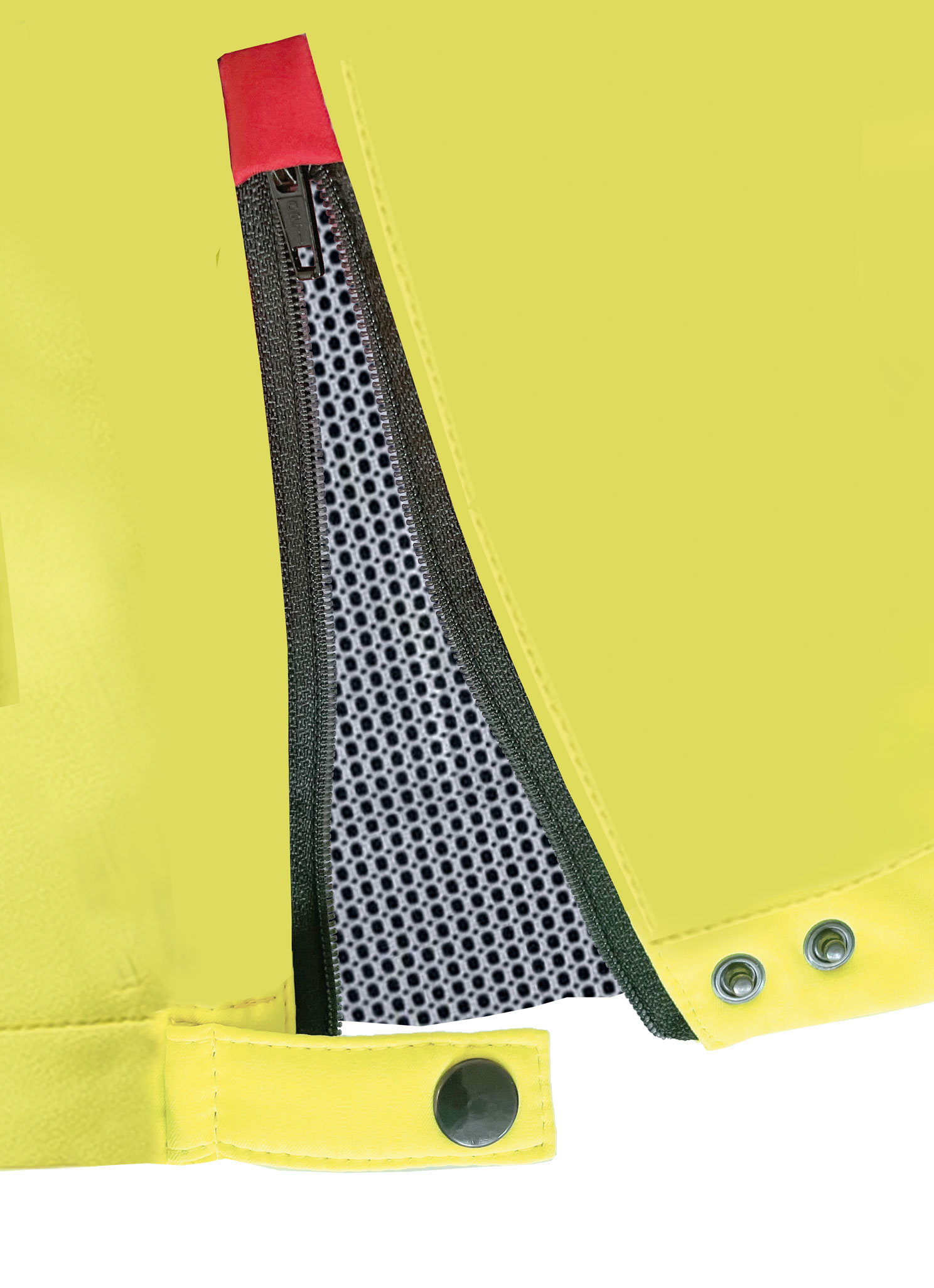 - Belüftungssystem 3 - Rücken: Gesamter oberer Rücken aus Netzfutter und überdeckter Gewebe-Rückenblende mit Klettverschluß