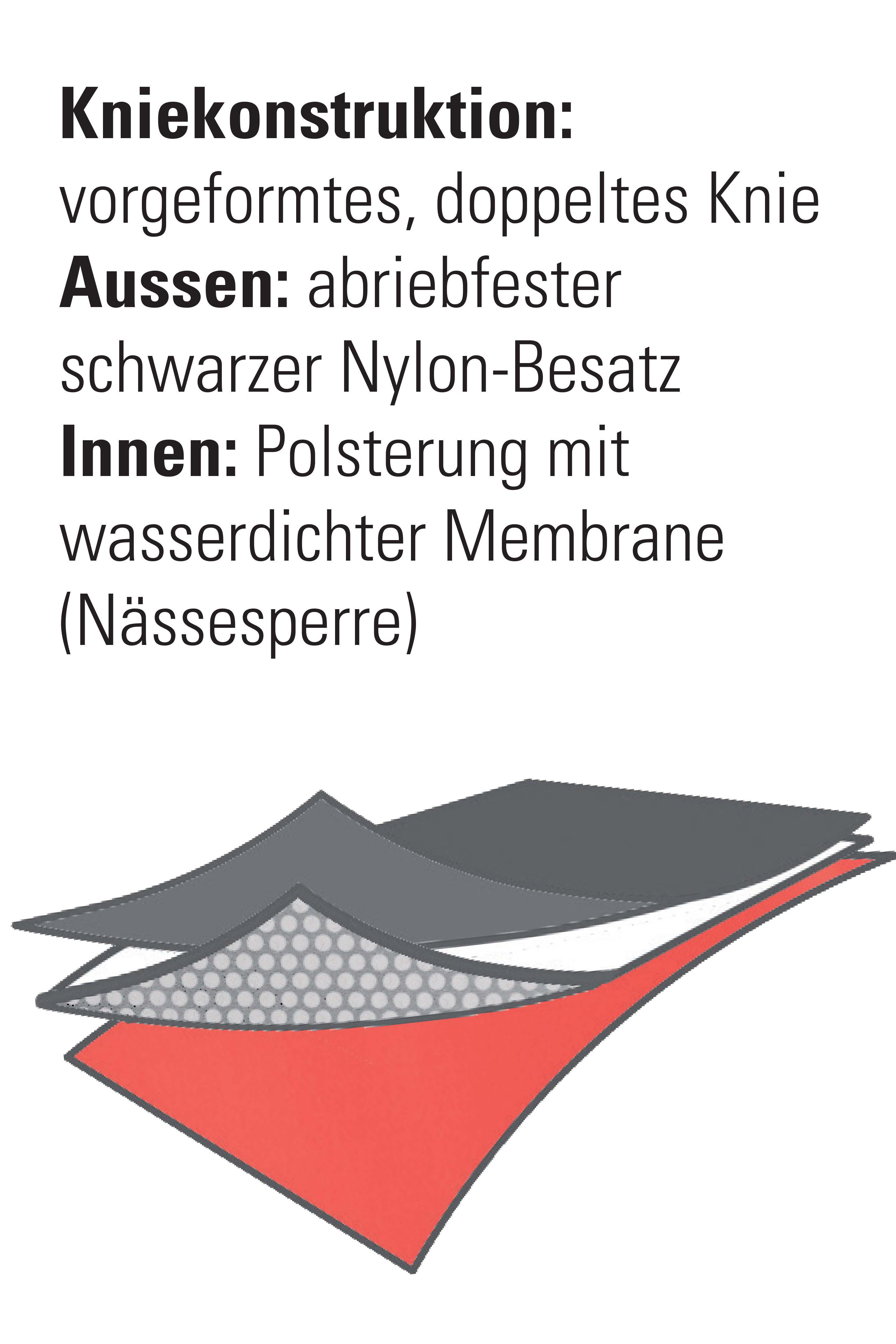 Vorgeformt | Aussen: abriebfester schwarzer Nylon-Besatz | Innen: Polsterung mit wasserdichter Membrane