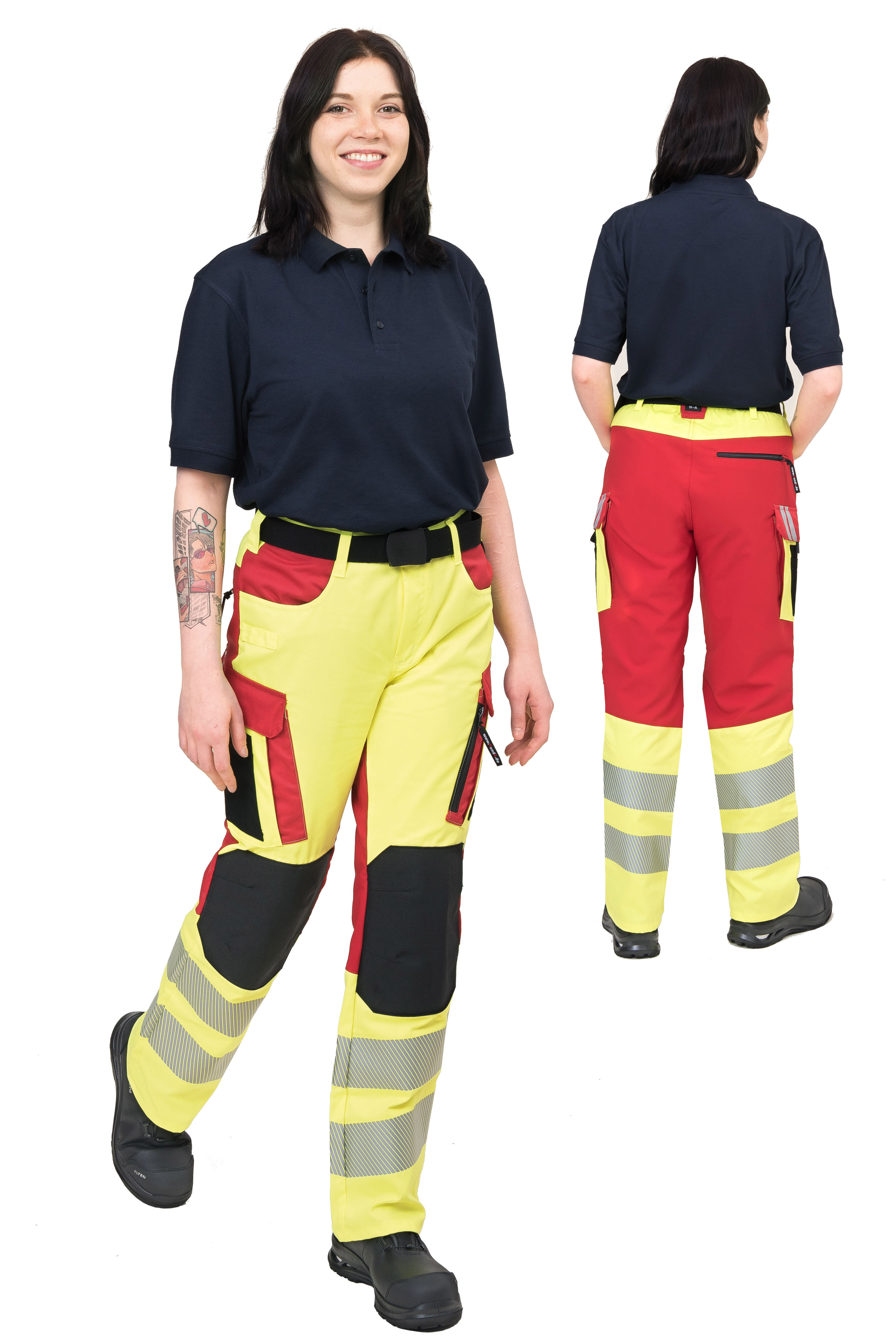 Voll elastische Rettungsdiensthose für Damen | Warnklasse 1 |speziell entwickelt für den optimalen Einsatz im professionellen Rettungsdienst | Sanitäter und Notärzte