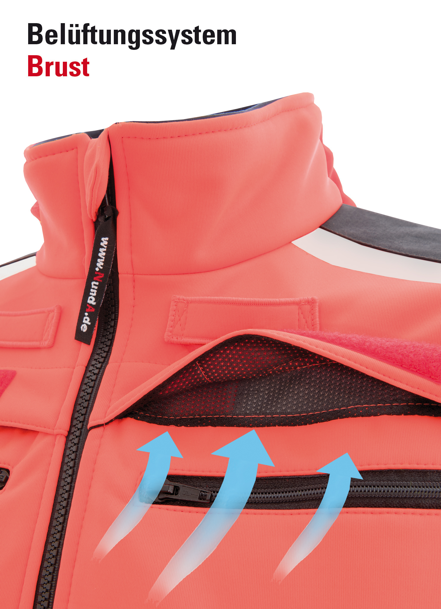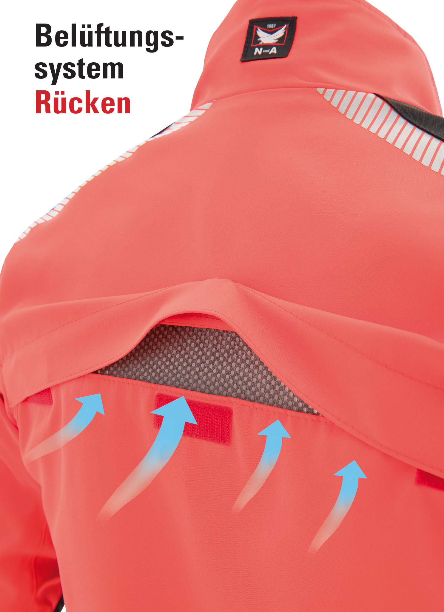 - Netzfutterbelüftung Brust und Rücken jeweils mit verdeckter Blende